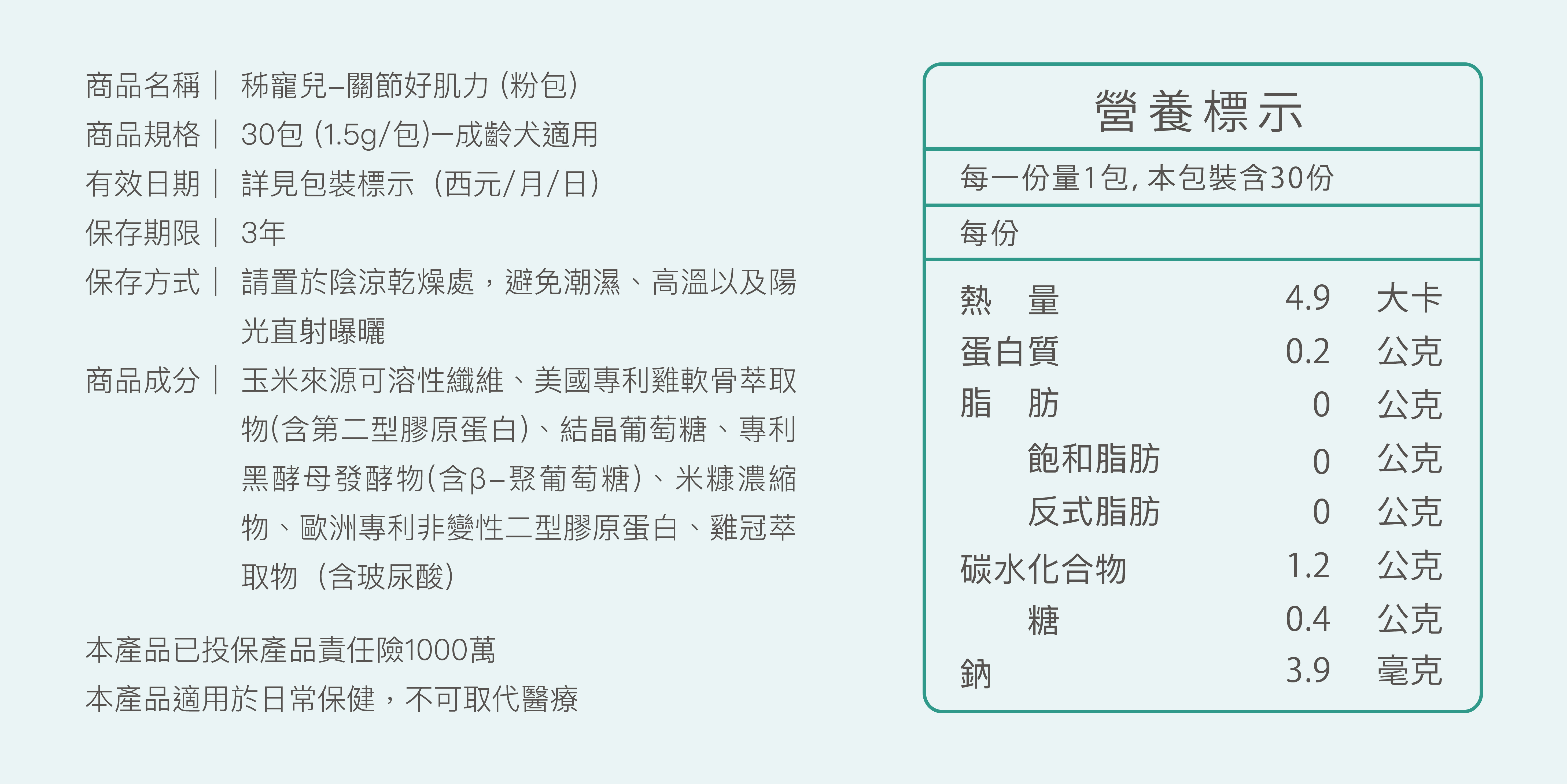 ▶食用方式:10公斤(含)以下,每日 0.5包