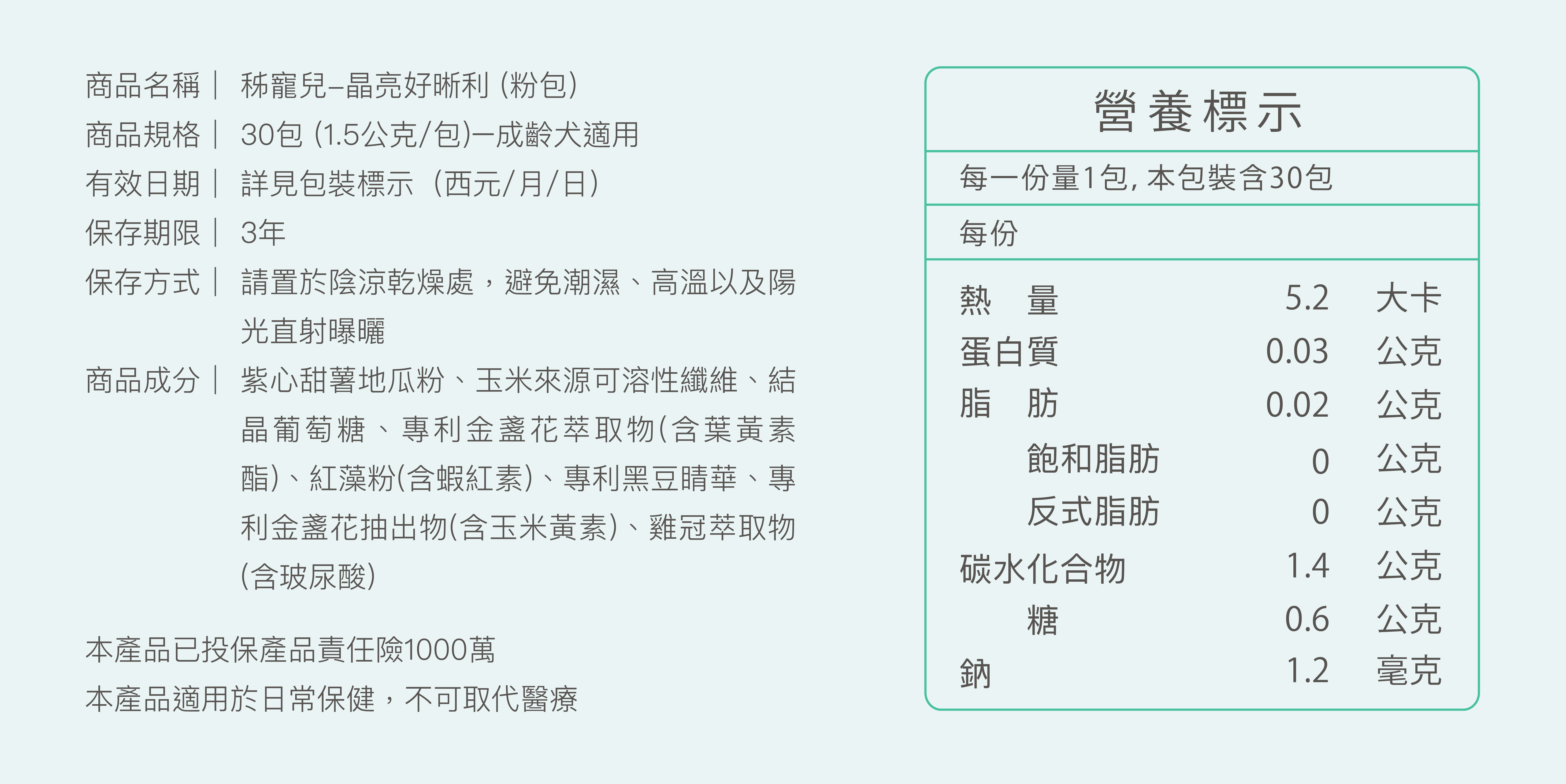 ▶食用方式:10公斤(含)以下,每日 0.5包