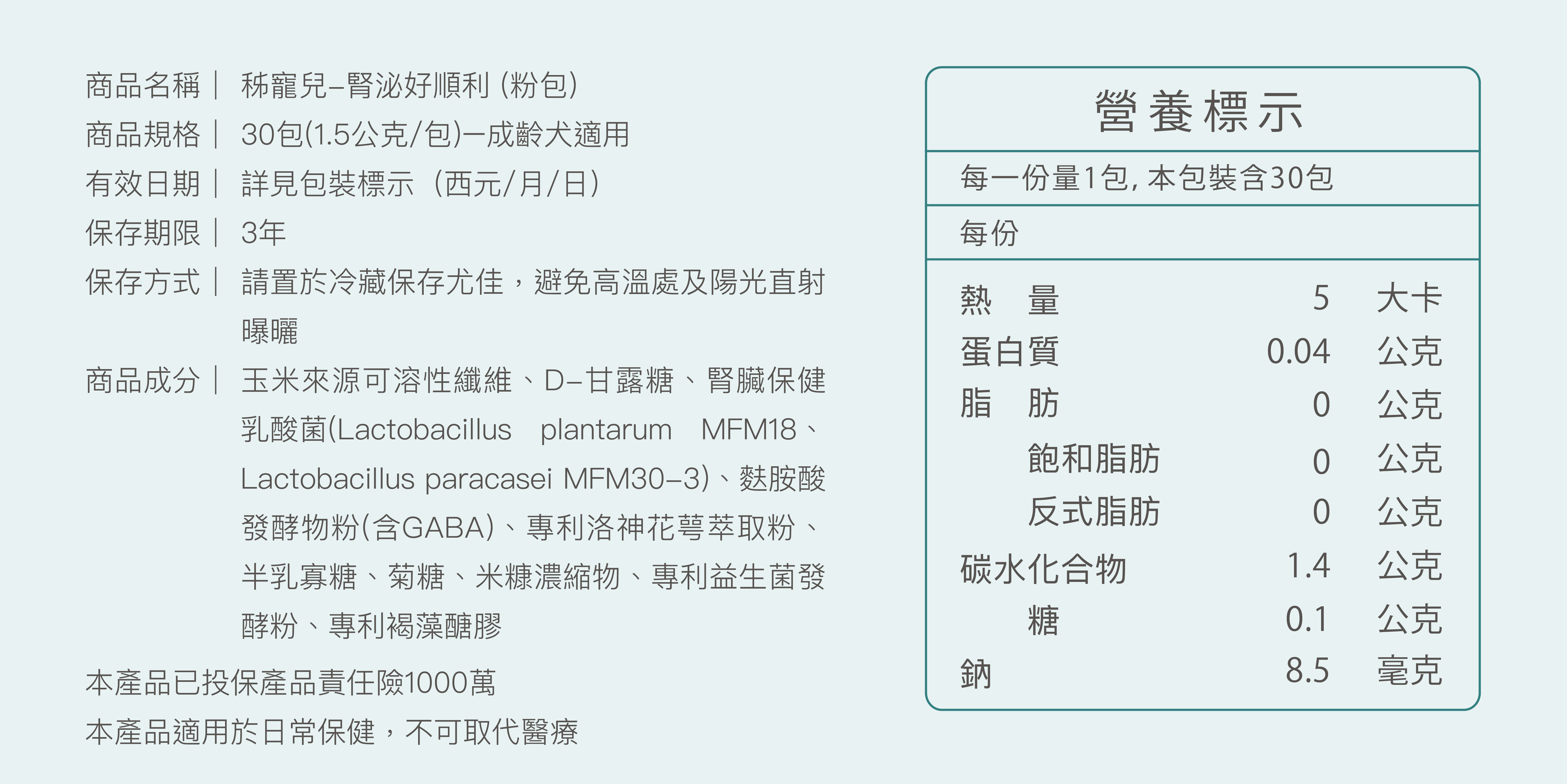 ▶食用方式:10公斤(含)以下,每日 0.5包